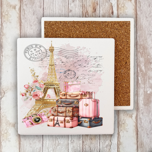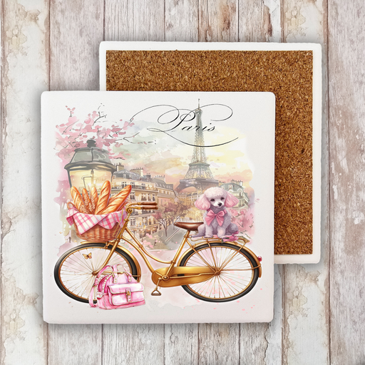 French Paris Bicycle Dog Baguettes Stone Coaster