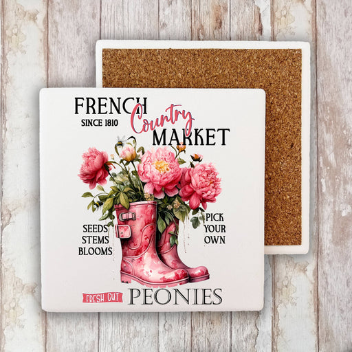Vintage Farmhouse Peas Pods Vegetables Stone Coaster