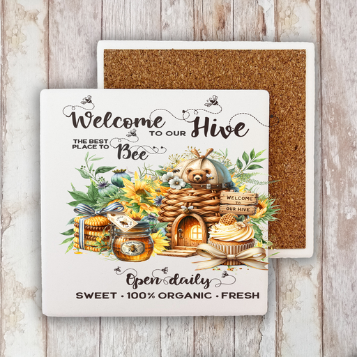 4" x 4" Absorbent White Stone Coaster, Cottage Decor, Farmhouse decor, Home Decor, Table Top, Drink Coasters, Decorative Coasters, Coasters with sa...