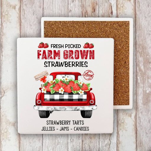 Country Farm Fresh Strawberries Red Truck Stone Coaster