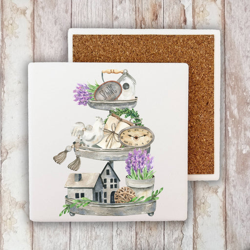 4" x 4" Absorbent White Stone Coaster, Cottage Decor, Farmhouse decor, Home Decor, Table Top, Drink Coasters, Decorative Coasters, Coasters with sa...