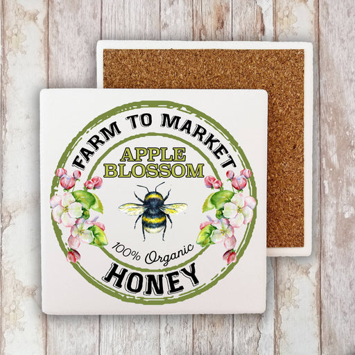 Apple Blossom Honey Bee Farm to Market, Stone Coaster