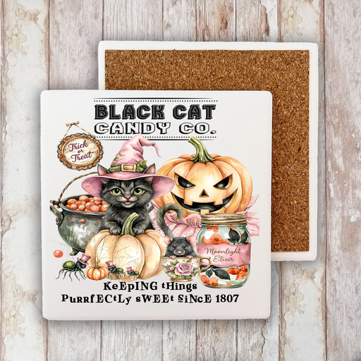 Halloween Hocus Pocus Black Cat Stone Coaster