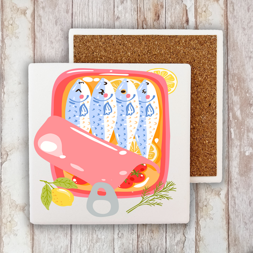 Cute Sardines Tinned Fish Coastal Stone Coaster