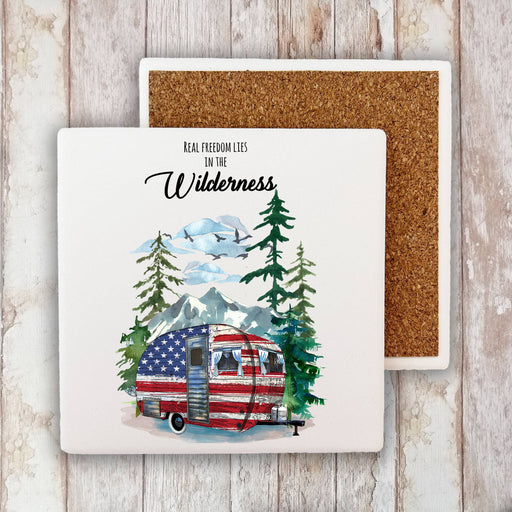 Real Freedom in Wilderness Patriotic Stone Coaster