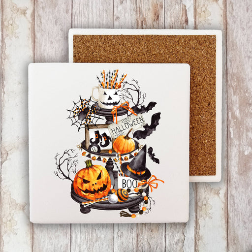 Happy Halloween Stacked Pumpkins Stone Coaster