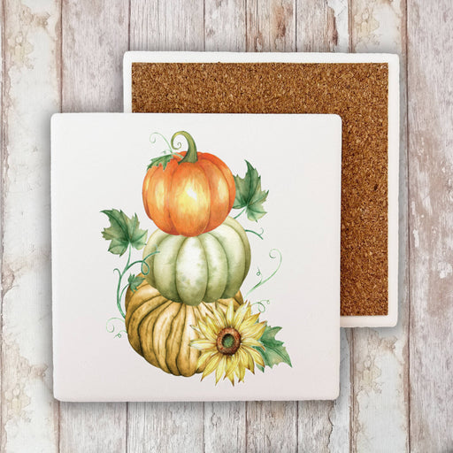 Fall Autumn Farmer Stack Pumpkin Stone Coaster