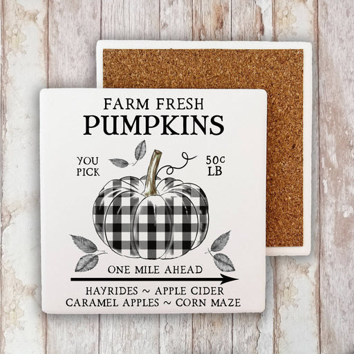 Fall Autumn Farm Plaid Pumpkin Stone Coaster