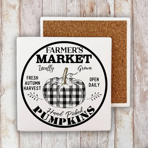 Fall Autumn Farmer Plaid Pumpkin Stone Coaster