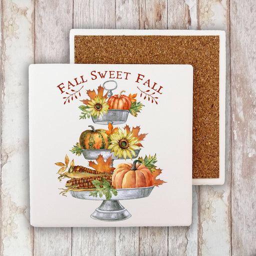 Fall Sweet Fall Pumpkins Corn Flowers, Stone Coaster