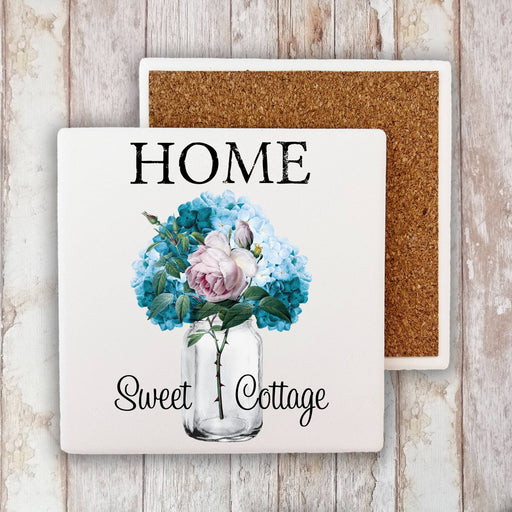 Home Sweet Cottage Flowers Mason Jar, Stone Coaster