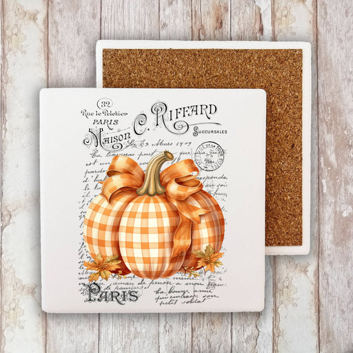 Fall Autumn French Checkered Pumpkins Stone Coaster