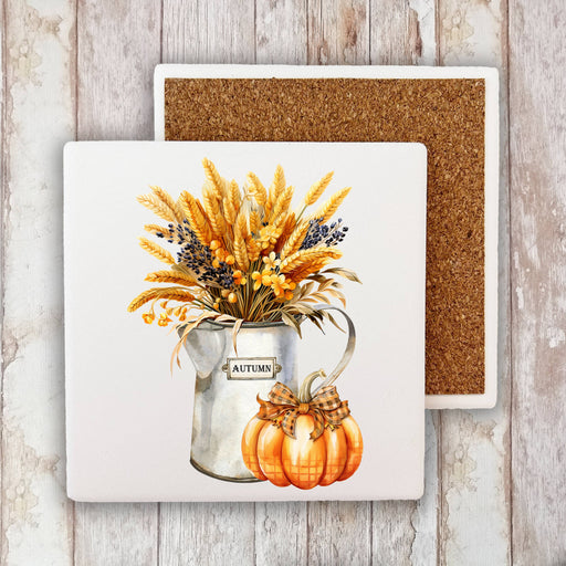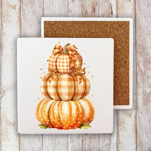 Fall Autumn Wheat Checkered Pumpkins Stone Coaster