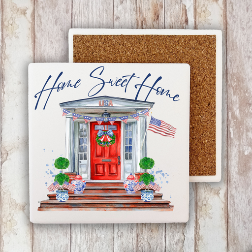 Patriotic Red Door Home Sweet Home Stone Coaster
