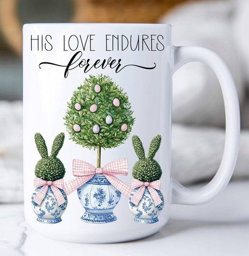 His Loves Endures Forever Topiary Easter Coffee Mug