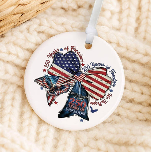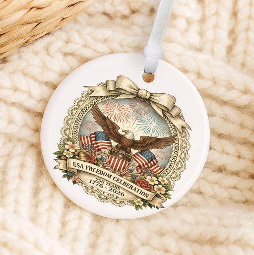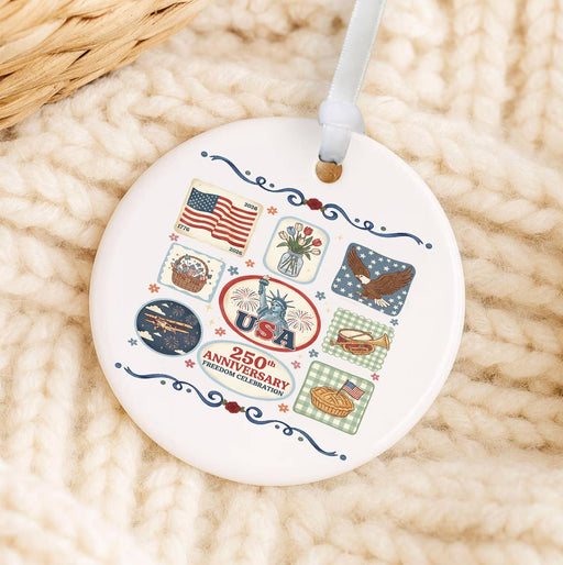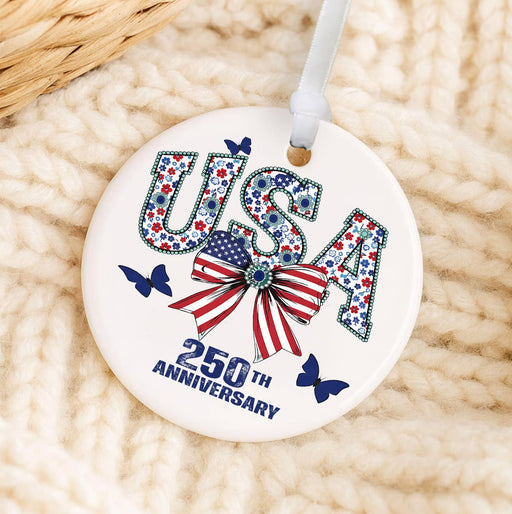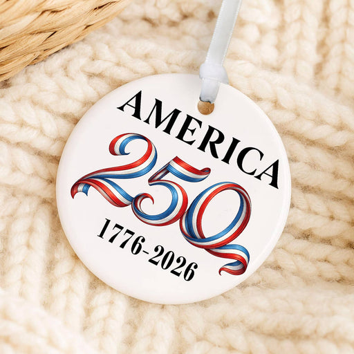 View full detailsThis high-quality porcelain ornament is designed and printed in the USA. Measuring 3" in diameter. White Velvet ribbons are used for hanging the or...