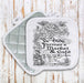 Cotton canvas quilted pot holder with metallic heat and flame-resistant Teflon backside