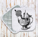 Cotton canvas quilted pot holder with metallic heat and flame-resistant Teflon backside