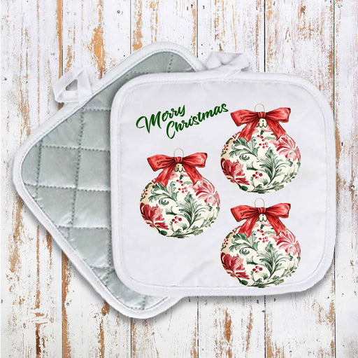 Christmas Water Toile Ornaments Pot Holder Oven Mitt