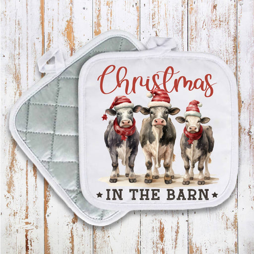 Christmas in the Barn Cows Pot Holder Oven Mitt