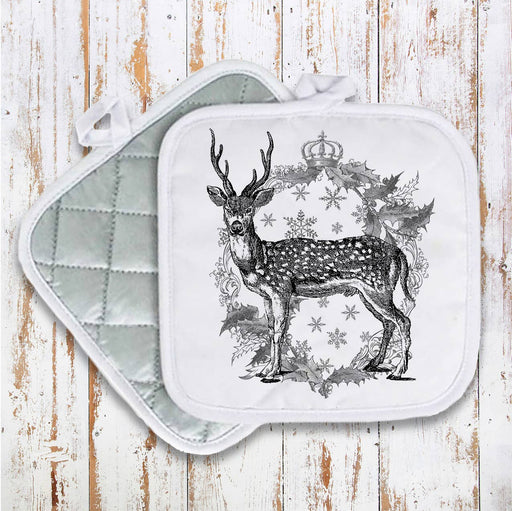 Christmas Deer Crown Wreath, Pot Holder Oven Mitts