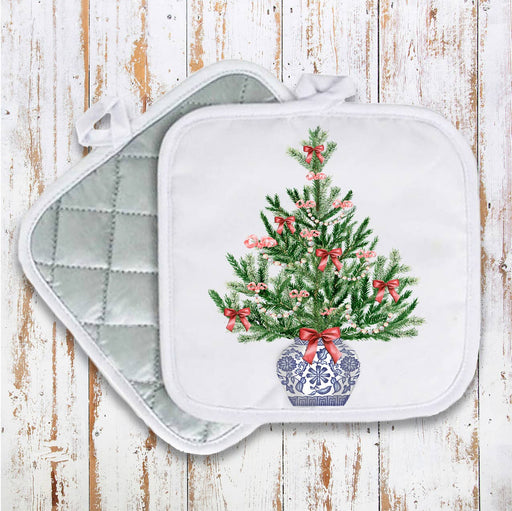 Chinoiserie Christmas Tree Pot Holder Oven Mitt