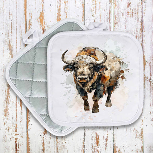 Buffalo Beige Tones Waterolor Pot Holder Oven Mitt