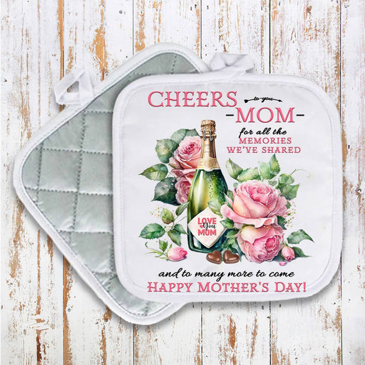 Cheers to Mom Mothers Day Pot Holder Oven Mitt