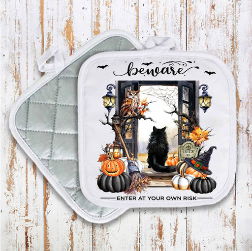 Halloween Beware Black Cat Pumpkins Pot Holder Oven Mitt