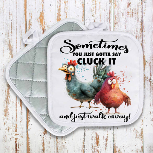 Gotta Cluck it and Walk Away Chickens Pot Holder Oven Mitt