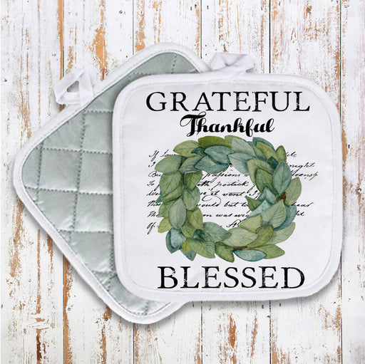 Grateful Thankful Blessed Wreath Pot Holder Oven Mitts