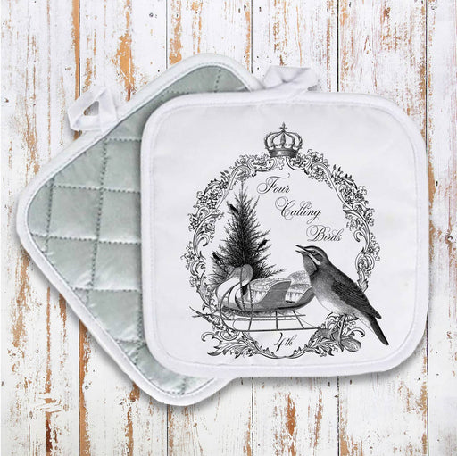 Four Calling Birds Christmas, Pot Holder Oven Mitts