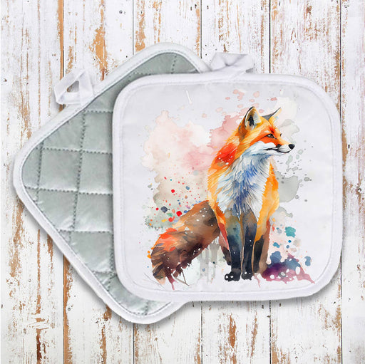 Fox Animal Watercolor Pot Holder Oven Mitt