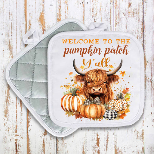 Fall Highland Cow Y'All Pumpkins Pot Holder Oven Mitt