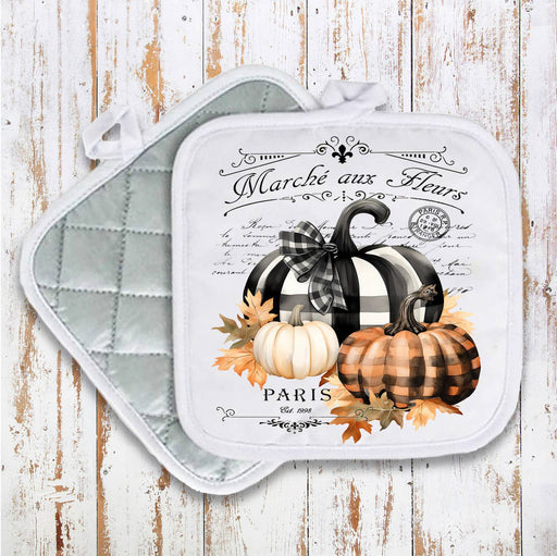 Fall French Black white Checkered Pumpkins Pot Holder
