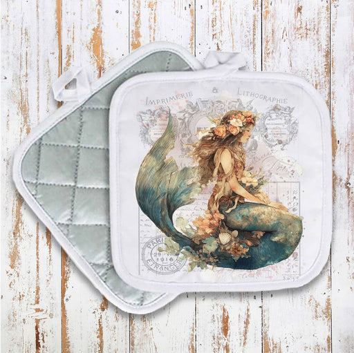 Vintage French Mermaid Coastal Pot Holder Oven Mitt
