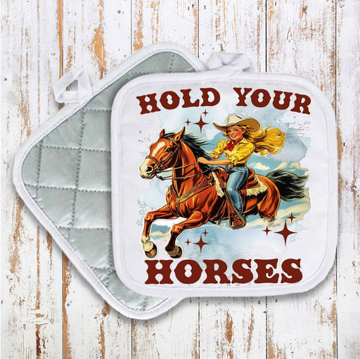 Vintage Cowgirls Hold Your Horses Pot Holder Oven Mitt