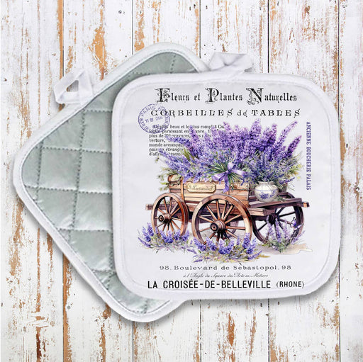 Vintage French Lavender Wagon Pot Holder Oven Mitt