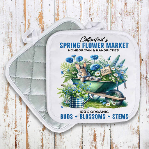 Blue Springs Flowers Bunny Pot Holder Oven Mitt