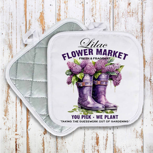 Lilac Flower Market Garden Boots Pot Holder Oven Mitt