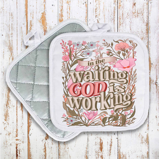 In The Waiting God Is Working Spiritual Pot Holder Oven Mitt