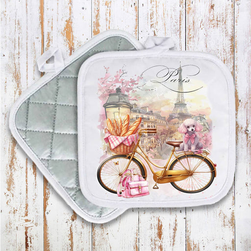 French Paris Bicycle Dog Baguettes Pot Holder Oven Mitt