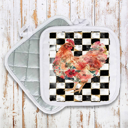 Checkered Colorful Chicken Pot Holder Oven Mitt