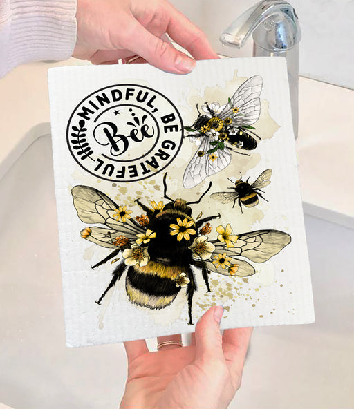 Bee Mindful Be Grateful Spiritual Swedish Dishcloth