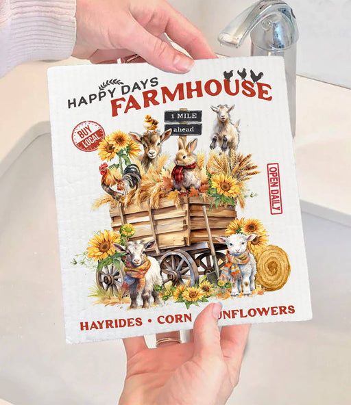 Autumn Fall Goats Farmhouse Swedish Dishcloth
