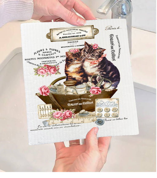 Country Vintage Fench Kittens Cats Swedish Dishcloth