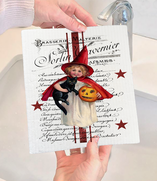 Halloween Vintage French Black Cat Swedish Dishcloth