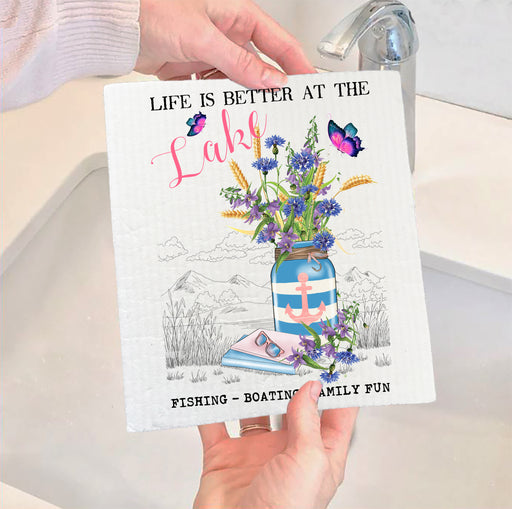 Life is Better at the Lake Flowers Swedish Dish Cloth