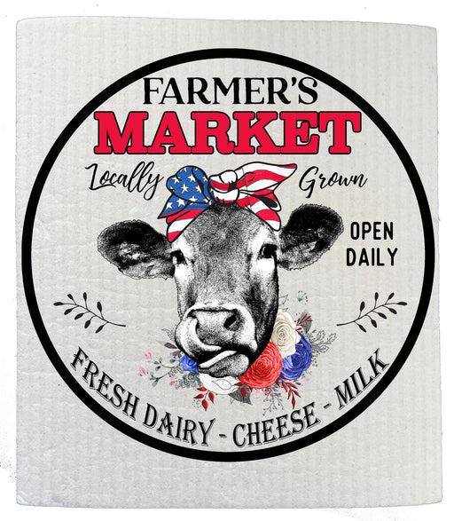 Historic Farmers Market Patriotic Cow SWEDISH DISH CLOTH