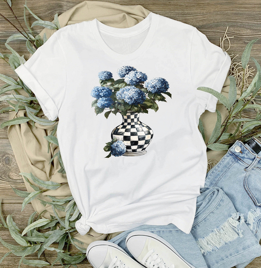 Checkered Vase with Blue Hydrangeas T-Shirt